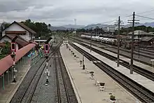 Kaeng Khoi Junction railway station is a railway station located in Kaeng Khoi Subdistrict, Kaeng Khoi district, Saraburi province. It is a class 1 railway station located 125.106 km (77.7 mi) from Bangkok railway station. It opened on May 1, 1897 as part of the Northeastern Line Ayutthaya–Kaeng Khoi Junction section. In 1956, the station became a junction when a line branched off to Suranarai Station. Then in 1995, another line from Khlong Sip Kao Junction for freight trains only linked to the Northeastern Mainline.