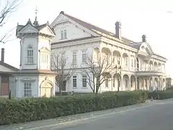 Most Kaikosha buildings that survived the war still exist despite having been commandeered by SCAP during the subsequent occupation. Notable among them are the 7th Division's Asahikawa Kaikosha, which is today the Asahikawa Museum of Sculpture, the 8th Division's Hirosaki Kaikosha which is today a memorial hall open to the public,[5] and the 11th Division's Zentsūji Kaikosha which is today used for a variety of purposes including as the site of placement exams for members of the Self-Defense Force, of regular recitals of the JSDF band, and of events and exchanges between local civilians and JSDF personnel, and there is even a Kaikosha Café in a separate building recently established beside the main building.[6] All three of these buildings have received national recognition as Important Cultural Properties of Japan.