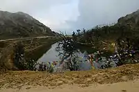 Kalipokhri (3186 m) is a small Himalayan village inside the Singalila National Park in the Darjeeling subdivision, Darjeeling district in the state of West Bengal, India. It lies on the trekking route from Mane Bhanjang to Sandakphu (the highest peak in West Bengal), and is roughly halfway between the steep final stretch of the trek from Gairibans to Sandakphu. The word, "Pokhri" means "lake" and "kala" means "dark" in Nepali, and the village is named after a local lake with dark waters or a lake whose water is dark in color. The lake is of extreme religious significance to the locals. Opposite the lake a border check post of Nepal Army is situated.
