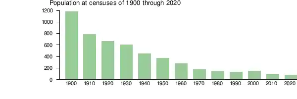 2% of residents were under the age of 18, 1% from 18 to 24, 18% from 25 to 44, 46% from 45 to 64, and 32% who were 65 years of age or older. The median age was 59 years. For every 100 females, there were 98.6 males. The population has declined since 1900:[25]