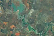 Kalkfontein Dam is a rockfill type dam located on the Riet River, near Koffiefontein, Free State, South Africa. It was established in 1938 and renovated in 1977. The primary purpose of the dam is to serve for irrigation purposes and its hazard potential has been ranked high (3). Kalkfontein Dam reservoir is often quite low (10-20% full) as the upstream area is hot and dry and too small to fill a dam of this size, however during flooding on the Orange River, water is transferred from the Orange River at Vanderkloof Dam to Kalkfontein Dam. In 2021 this led to the reservoir rising from 17.3% to 61.7% in a single week.