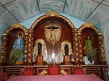 ![]() Altar showing the Twin Crosses on either side of the crucifix | |