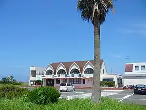 Kamigotō Airport (ICAO: RJDK) is a public aerodrome located on Kashiragashima Island (頭ヶ島), a smaller bridge-linked island just off the far east coast of Nakadorijima in the Gotō Islands, Nagasaki Prefecture, Japan. The site is about 8 km (5.0 mi) northeast[1] of Kamigotō town office, Shinkamigotō. The terminal was renovated in July 2015 and the airport remains active for emergency medical shuttles, but commercial passenger routes have been suspended for several years. Given the airport's lack of traffic and its unusually remote location, the runway has been used occasionally as a venue for 'dark sky' appreciation tours with tourists lying on the runway and staring at the cosmos above.[2]