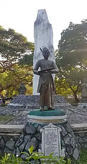 Upon his death, he was conferred the royal title Thiri Pawara Maha Dhamma Yaza, nominally reserved for kings, as part of a yadaya ritual to "substitute" for Mindon's death.[3] From almost a year (4 August 1866 to 6 June 1867), Kanaung's corpse was displayed in the middle of a temporary ceremonial palace (during the time, Mindon had relocated to a temporary palace as a form of yadaya, owing to a prophecy that claimed a king would be lost in BE 1228. Kanaung, by assassination, had 'fulfilled' this prophecy and was thus entitled proper rites reserved for a monarch.)[3] His body was buried in the grounds of the Sandamuni Pagoda, built in his memory at the foot of Mandalay Hill by Mindon.[5]