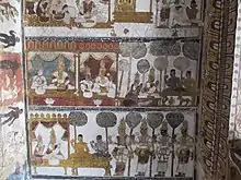 The Medieval Chola king Aditya I conquered the Pallava kingdom, including Kanchipuram, after defeating the Pallava ruler Aparajitavarman (880–897) in about 890.[27] Under the Cholas, the city was the headquarters of the northern viceroyalty.[28] The province was renamed Jayamkonda Cholamandalam during the reign of King Raja Raja Chola I (985–1014),[29][30] who constructed the Karchapeswarar Temple and renovated the Kamakshi Amman Temple.[30] His son, Rajendra Chola I (1012–44) constructed the Yathothkari Perumal Temple.[31] According to the Siddhantasaravali of Trilocana Sivacharya, Rajendra Chola I brought a band of Saivas with him on his return from the Chola expedition to North India and settled them in Kanchipuram.[32] In about 1218, the Pandya king Maravarman Sundara Pandyan (1216–1238) invaded the Chola country, making deep inroads into the kingdom which was saved by the intervention of the Hoysala king Vira Narasimha II (1220–1235), who fought on the side of the Chola king Kulothunga Chola III.[33][34] Inscriptions indicate the presence of a powerful Hoysala garrison in Kanchipuram, which remained in the city until about 1230.[35] Shortly afterwards, Kanchipuram was conquered by the Cholas, from whom Jatavarman Sundara Pandyan I took the city in 1258.[36] The city remained with the Pandyas until 1311 when the Sambuvarayars declared independence, taking advantage of the anarchy caused by Malik Kafur's invasion.[29][37] After short spells of occupation by Ravivarman Kulasekhara of Venad (Quilon, Kerala) in 1313–1314 and the Kakatiya ruler Prataparudra II, Kanchipuram was conquered by the Vijayanagara general Kumara Kampana, who defeated the Madurai Sultanate in 1361.[14]