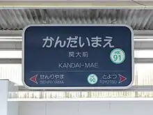 Kandai-mae Station (関大前駅, Kandai-mae-eki) is a train station on the Hankyu Railway Senri Line located in Suita, Osaka Prefecture, Japan.