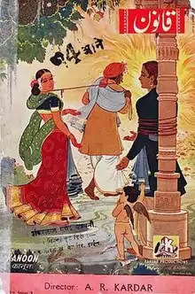 Kanoon also called The Law is a 1943 Hindi/Urdu social film directed by A. R. Kardar. It was produced by Kardar for "Kardar Productions".[1] The music director was Naushad who after Sharda (1942), once again made a young Suraiya give playback for Mehtab.[2] The story was by Qabli Amritsari with screenplay and lyrics by D. N. Madhok. The film starred Shahu Modak, Mehtab, Gajanan Jagirdar, Nirmala Devi, Ulhas and Badri Prasad.[3]