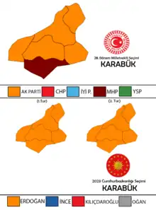 - ↑ "CUMHURBAŞKANI VE 28.DÖNEM MİLLETVEKİLİ GENEL SEÇİMİ KARABÜK İLİ SEÇİM ÇEVRESİ" (PDF). Retrieved 10 November 2023.