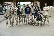 ![]() Colonel Grzegorz Kaliciak, director Krzysztof Łukaszewicz and actors on the Karbala movie set | |
