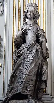 Leopold of Schleswig-Holstein-Sonderburg-Wiesenburg, Karolina's only child, succeeded his father as duke when he died in 1724. He had five daughters from his marriage with Marie Elisabeth, daughter of Hans-Adam I, Prince of Liechtenstein: