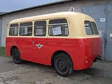 Karosa B 40 is two-axle bus trailer (trailer). Trailers had semi self-supporting body based on the "mountain buses" Tatra 500 HB, which Karosa also produced. Conceptually was B 40 based on the trailer Karosa D 4, which was produced at the turn of the 1940s to 1950s. B 40 had a metal body of steel-voltage extruded profiles, which were electrically welded to each other. The exterior of the trailer was flashing, the interior was lined with wood-fiber plates. The axle beams were hung on the bottom shelf of the body. The front axle was manageable. Passenger seats were distributed differently. trailers made in Karosa had longitudinal bench seat with one cross on each forehead trailer. Trailers from Letňanské strojírny (B were identified as 40 A) had the seat positioned transversely. Loading and unloading was done by one manually operated, so-called percussion doors on the right side panel.