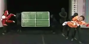 Matrix Ping Pong is the name of a popular movie clip from the show featuring performers playing ping pong with moves in the style of The Matrix, using kurokos—stagehands in kabuki theatre—to hold the props up, facilitating humorous and otherwise impossible movements. Most of the elements in the performance are set against black to visibly obscure the stagehands. This performance, led by team captain Hideki Kajiwara (梶原比出樹), won the competition on March 31, 2003.[3] The clip became an internet meme.