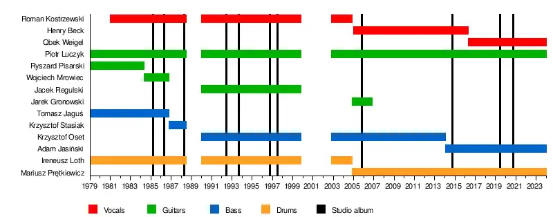- Roman Kostrzewski – vocals (1981–1988, 1990–1999, 2002–2004) (died 2022)