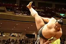 ![]() Katayama performing his high shiko stamps in September 2008 | |