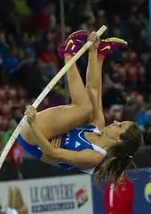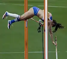 Katerina Stefanidi (Greek: Κατερίνα Στεφανίδη; born 4 February 1990[3]) is a Greek pole vaulter. She won the gold medal at the 2016 Rio Olympics and has also competed at the 2012 London and the 2020 Tokyo Olympics. Stefanidi was the 2017 World champion and earned bronze at the 2019 World Championships. At the European Athletics Championships, she won two gold medals (2016, 2018) and two silvers (2014, 2022). Indoors, she is a two-time World Indoor bronze medallist from 2016 and 2018, was the 2017 European Indoor champion and earned silver at the 2015 European Indoor Championships.