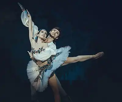 The duet with the People's Artiste of Ukraine, the principal dancer of the National Opera of Ukraine, Aleksandr Stoyanov formed in 2006. Their first joint performance at the National Opera of Ukraine was “The Nutcracker” ballet. A few months later, they went on tour to China with the performances of “Giselle”, “The Sleeping Beauty”, “Swan Lake”, “Romeo and Juliet”. Today, their repertoire includes almost all classical and neoclassical productions of the National Opera of Ukraine. London ballet critic Maggie Foer called the duet “the most beautiful ballet couple in Europe”. In 2011, they participated in Vladimir Malakhov's Charity Gala to help Japan after the Fukushima events. In 2013, Farukh Ruzimatov invited Kateryna and Aleksandr to his Gala Concert in Japan titled “Ballet Masterpieces”. The same year, Andris Liepa invited them to dance at his anniversary event during the Russia and Kazakhstan tour. In 2016, they participated in the Mayan Culture Festival in Mexico along with the principal dancers of the Deutsche Oper Berlin\Berlin Opera, the Bolshoi Theater and the New York City Ballet. For years, Kateryna and Aleksandr have been the favorites of the Ukrainian audiences with their performances being sold-out each time.