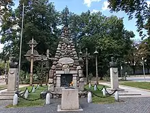 After the third and final partition of the Polish–Lithuanian state in 1795, the city was taken over by the Russian Empire and became a part of Vilna Governorate.[26] During the French invasion of Russia in 1812, the Grand Army of Napoleon passed through Kaunas twice, devastating the city both times. A hill fort mound in Kaunas is named Napoleon's Hill.[26]