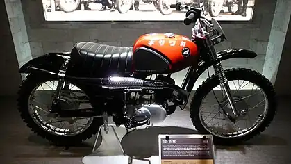 The B8M was created solely to compete in the Japanese Motocross Championships by Kawasaki engineers which took a stock Kawasaki B8 and modified it by changing the forks, seat, adding handlebars with a cross bar, raised expansion chamber, knobby tires. A later version was made with "Kawasaki" stretching the length of the fuel tank without knee grips. The success of the B8M lead to the development of the Kawasaki F21M for 1968.[1]