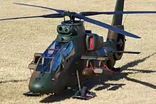 The Kawasaki OH-1 (nickname: "Ninja") is a military scout/observation helicopter developed and manufactured by the Kawasaki Aerospace Company. The primary operator is the Japan Ground Self-Defense Force (JGSDF), who originally procured the OH-1 as a domestically produced successor to their existing OH-6D Loach fleet. The OH-1 has the distinction of being the first helicopter to be entirely produced in Japan.[2]
