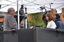Ofcom rejected any complaints over Sky News coverage of the event, despite receiving 2,800 complaints.[26] Burley was subsequently heckled by protestors while reporting from College Green, who continuously chanted "sack Kay Burley", prompting Burley to say "Lots of demonstrators shouting 'fair votes now' – not sure what they mean by that" and "They don't like The Sun, they don't like us, they don't like Rupert".[28] In September 2010, commenting on the News International phone hacking scandal, part of an exchange between Labour MP Chris Bryant and Burley went viral, whereby Burley asks Bryant to cite information claiming that phone hacking was "endemic" in other newspapers. Bryant did, accusing Burley of being "a bit dim"[29] and saying: