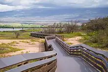 Kealia Pond National Wildlife Refuge is a coastal salt marsh along the south-central coast of Maui, Hawaiʻi. The refuge is located between the towns of Kihei and Maalaea, on both sides of North Kihei Road, Route 31. The wetland is also a 691-acre (2.80 km2) bird sanctuary, home to 30 species of waterfowl, shorebirds, and migratory ducks, including the ʻaukuʻu (black-crowned night heron, Nycticorax nycticorax hoactli) and the endangered āeʻo (Hawaiian stilt, Himantopus mexicanus knudseni) and ʻalae keʻokeʻo (Hawaiian coot, Fulica alai).[4][5][6] Kealia Pond was selected as a wildlife refuge in 1953, protecting an initial 300 acres (1.2 km2) of land.[5] The refuge joined the National Wildlife Refuge System in 1992.[4]