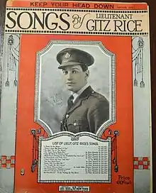 "Keep Your Head Down, Fritzie Boy" is a World War I song written and composed by Gitz Rice.[1] This song was published in 1918 by Leo. Feist, Inc., in New York, NY. The cover features a photo of Gitz Rice and reads "inspired by a brave Tommy and written at the Battle of Ypres, 1915."[2]