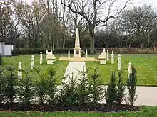 The cemetery is located in what was previously the Kemnal House Estate.[5] A series of houses were built in this location, the first being mentioned in deeds in 1250 and the last being destroyed by fire in 1964.[6] From 1964 until work on the new cemetery commenced, the site remained derelict.