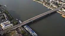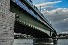 The Kennedy Bridge (German: Kennedybrücke) is the middle of Bonn's three Rhine bridges (North, Kennedy and South bridge), connecting the city center of Bonn on the left side with the town center of Beuel (which was incorporated into Bonn in 1969) on the right side. The second Reconstruction, which began in 2007, was finished in July 2011.