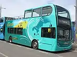 During the summer months, Kernow operates open top buses. In 2017, the service was relaunched under the Atlantic Coaster brand with Plaxton President bodied Dennis Trident 2s drafted in to replace the Alexander bodied Volvo Citybuses.[6] In 2022 First Kernow operated four 'Coaster' branded open top bus routes in Cornwall: the Land's End Coaster (Penzance - Marazion - St Ives - Land’s End - Penzance Circular); the Tin Coaster (Penzance - Lower Boscawell); the Atlantic Coaster (Newquay - Padstow); and the Falmouth Coaster (Falmouth Circular).