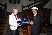 In July 2008, Sanderson was named Agent-General for Western Australia, replacing Noel Ashcroft. Appointed by Governor Ken Michael on the advice of Alan Carpenter, the premier at the time, she took up the role in November 2008, becoming the first female agent-general in Australia.[15] The agent-general is based at Australia House, London, and, as head of the government's European Office, is primarily involved in promoting trade and investment, with some diplomatic functions.[16] During her period as agent-general, Sanderson concentrated on attracting foreign investment and skilled immigrants to Western Australia, as well as promoting WA food and wine exports in European markets.[13] She was also involved in promoting Australia's (successful) bid for the Square Kilometre Array, a radio telescope to be built near Boolardy.[17] Sanderson left the position in December 2011, after her three-year term expired, and was replaced by Kevin Skipworth.[18]