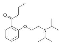 Williamson ether synthesis between 2'-hydroxybutyrophenone [2887-61-8] (1) and diisopropylaminoethyl chloride hydrochloride [4261-68-1] (2) gives Ketocaine (3)..