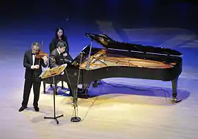 The trio’s first major performance project, “The Complete Piano Trios of Ludwig van Beethoven” included three separate performances of the entire piano trio cycle of Beethoven in Irvine, San Francisco, and Toronto, as well as multiple performances of the Triple Concerto with the UC Irvine Symphony Orchestra at the Irvine Barclay Theater and the Capistrano Conductor's Institute Orchestra at the Marcus D. Hurlbut Theater in Southern California.[18] “The American Project” took place in June 2015 featuring world premieres by Christopher Dobrian and jazz flautist Nicole Mitchell as well as established works by John Adams, Samuel Adler, John Corigliano, and Eugene Drucker, and "The Evolution of Ludwig van Beethoven" with music critic Timothy Mangan explored the creative evolution of Beethoven through his music for violin, cello, and piano.