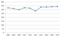 Since 1881, the population of Kexby has remained relatively steady, never exceeding a total of 350. Unlike a majority of villages in the UK, Kexby seems to be unaffected by the events of World War 1. The population only decreased by 5 between 1911 and 1921, from 325 to 320.[17] As of 2011, the total population of Kexby is 340.[18] The age range in the population of Kexby is quite diverse; the census data for 2011 highlights this. The most populous age ranges seems to be from 40 to 49 and 60–69, but for a village like Kexby there also seems to be a healthy proportion of other younger and older generations.[19]