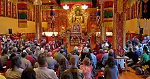 - Khenpo Karthar resting in state in the main shrine room at Karme Ling