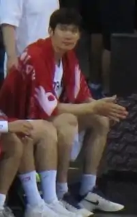 Kim is the first player to exceed 1000 blocks in the KBL, earning him the nickname "Emperor of Blocks" (블록슛 황제).[3][2] He was ranked second, behind Seo Jang-hoon, for the all-time most number of rebounds in KBL history; Seo's record was eventually surpassed by Ra Gun-ah in January 2022.[9][10][11] He was the league's highest-paid domestic player from 2004 to 2012.[12][13] In December 2018, Wonju DB Promy announced that his number 32 jersey would be permanently retired, the club's second jersey to be retired after his former teammate Hur Jae.[14][15]