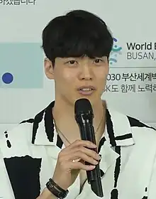 Kim participated at the 2014 FIBA Basketball World Cup.[17] He was a member of the gold medal-winning team at the 2014 Asian Games, which meant that he was exempted from mandatory military service.[18]