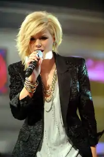 Kimberly Ann Caldwell-Harvey[1] is an American singer and television hostess. She rose to fame when she was a finalist on the second season of American Idol. After her American Idol stint, Caldwell was an entertainment correspondent and hosted various shows on the TV Guide Network. She released her debut album Without Regret on April 19, 2011.