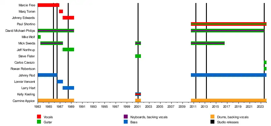 Past members | Marcie Free Mick Sweda Johnny Edwards David Michael-Philips Jeff Northrup Larry Hart Kelly Keeling Steve Fister |