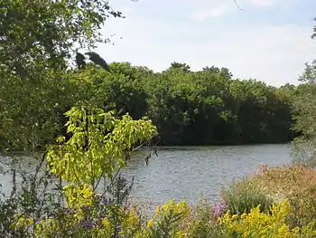 The Desjardins Canal in pioneer days provided the essential means of transportation. Dundas, located at the head of navigation of Lake Ontario and the eastern terminus of the Governor's Road, was thus in a favoured position. However, in 1823 the government authorized the construction of a canal for larger vessels through Burlington sand-bar. Since its completion would make the shallow approach through Coote's Paradise marsh inadequate, Pierre Desjardins, an enterprising settler from France, formed a company in 1826 to build a canal there. Opened on August 16, 1837, it contributed greatly to the development of this region until the completion of the Great Western Railway in 1853, when the Desjardins Canal gradually fell into disuse. By the time the first train entered Dundas in 1895 commercial traffic on the canal had come to an end.[5]