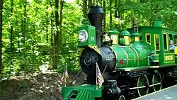 The Kings Island & Miami Valley Railroad is a 3 ft (914 mm) narrow gauge heritage railroad and amusement park attraction located at Kings Island in Mason, Ohio. The line is a 5,282-foot (1,610 m) loop. The line has two stations: the Losantiville station (the main station) also commonly referred to as "Rivertown Station" and a station at Soak City. It is a part of the rides department, and has a thrill rating of "1 - Low Thrill Ride". The entire journey lasts between 9 and 15 minutes, depending on station stops and number of trains in operation. In 2022, the railroad celebrated its 50th anniversary with the park. New changes were added to the ride’s scenery (most notably a refreshed western town, as well as new animals that occupy areas within the forest). The Kings Island & Miami Valley Railroad continues to be one of the oldest and most popular attractions at Kings Island.