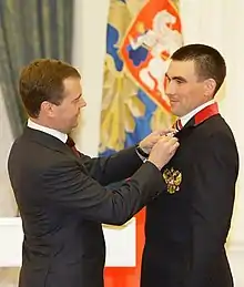 ![]() Kirill Mikhaylov is awarded the Order for Services to the Fatherland, fourth degree, in Russia, by President Dmitry Medvedev, for winning three gold and two silver in biathlon and cross-country skiing at the 2010 Winter Paralympics. | ||||||||||||||||||||||||||||||||||||