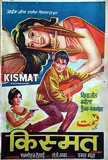 Kismat (transl. Destiny) is a 1968 Indian Hindi-language film directed by Manmohan Desai, produced by Kamal Mehra and released under the banner of Pride of Asia Films. It stars Biswajeet, Babita, Helen and Kamal Mehra in prominent roles. Other notable actors in the film are Bhagwan Sinha, Murad, M. B. Shetty (father of Rohit Shetty), Hari Shivdasani, Hiralal, Indra Kumar, Jagdish Raj (as Jagdishraj), Polsan, Prem Kumar, Paul Sharma, Tun Tun and Ullhas.[Ref 1][Ref 2]