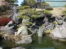 Kiyosumi Garden (清澄庭園, Kiyosumi Teien) is a traditional Japanese stroll garden located in Fukagawa, Tokyo. It was constructed along classic principles in 1878–85, during the Meiji Period, by the shipping financier and industrialist Iwasaki Yatarō.[1] By subtle hints in path construction and placement the visitor is led on a walk around the lake. Water-worn boulders were brought in from all over Japan, to give the garden its character; hills and dry waterfalls were constructed with them and two sequences of them form stepping-stones (isowatari) across small inlets of the lake, which almost completely fills the garden, allowing a pathway of many picturesque episodes around its perimeter. In fact only a narrow band of perimeter planting screens the garden from the structures along Kiyosumi Dori.[2] There are three big islands and a teahouse on the pond. The garden covers an area of about 81,000 square metres.