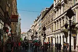 Knez Mihailova Street (Serbian: Кнез Михаилова улица, romanized: Knez Mihailova ulica, officially: Улица кнеза Михаила, Ulica kneza Mihaila) is the main pedestrian and shopping zone in Belgrade, and is protected by law as one of the oldest and most valuable landmarks of the city. Named after Mihailo Obrenović III, Prince of Serbia, it features a number of buildings and mansions built during the late 1870s.