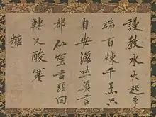 Kokan studied under the celebrated Chinese monk Yishan Yining. Their relationship can be regarded as the beginning of the golden age of the Literature of the Five Mountains in Japan. He studied calligraphy under an additional Chinese master Huang Shangu. Other works include Japan's first rhymed verse Jubun-in-ryaku in five volumes, Kokan Osho Juzenshiroku in three volumes, and the eighteen-volume Butsugo Shinron. A portrait of Kokan Shiren is in the Kaizoin of the Tōfuku-ji Temple in Kyoto, Japan.