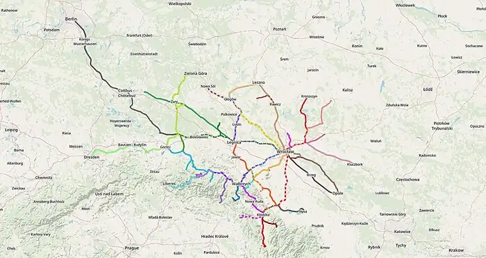 - ↑ "Rozkład, Bilety". Koleje Dolnośląskie (in Polish). Retrieved 2022-07-04.