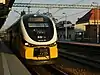 Koleje Dolnośląskie obtained their first electric multiple unit from Przewozy Regionalne in 2013 (it was an EN57AL which had been retrofitted the previous year). Three more EN57-class units were purchased and retrofitted at the cost of the Lower Silesian government. The company also purchased completely new electric vehicles – the first Newag Impuls units (31WE) were ordered in 2011 in a batch of five. In 2014 the operator ordered six Impuls 36WEa units; the following year, they ordered five more 31WE units.[1] The largest order in KD's history was its purchase of eleven 45WE units in 2017,[2] which, when the order was placed, were described as "the most well-equipped and comfortable trains in the country".[3]