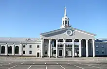 The business terminal, otherwise known as the VIP terminal, offers those willing to pay a unique experience. The business terminal is accessible only through direct payment. Prices can range from 8,500 rubles (one pass) to 250,000 rubles (12-month membership).[18] The business terminal is located in Koltsovo's first terminal, built in 1954. The structure has a mix of empire style and Russian neoclassical revival styles, enhancing the royal feel. Inside, the VIP terminal is also styled in neoclassical revival. The business terminal offers separate check-in desks, passport and custom controls. Free WiFi, catering, and delivery to the airplane is also offered.[19] The total area of the VIP terminal is 9,800 m2.