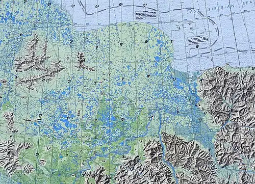 The Kolyma Lowland (Russian: Колымская низменность) is a lowland plain in the northeastern parts of Sakha Republic in the basin of the Alazeya, Bolshaya Chukoch'ya and lower reaches of the Kolyma rivers. The lowland is formed by fluvio-lacustrine loam soil about 120 m thick. The climate is subarctic.[1]