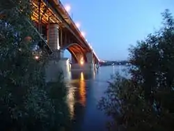 The Kommunalny Bridge or The Oktyabrsky Bridge (Russian: Коммунальный мост, Kommunalny Most) is an automobile bridge over the Ob River, connecting the Kirovsky, Leninsky and Oktyabrsky districts of Novosibirsk, Russia.